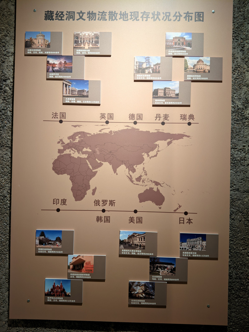 在积贫积弱的大清晚期,志愿看守敦煌莫高窟的湖北籍道士王圆箓在清理积沙时发现了藏经洞,并挖出佛教经卷、社会文书等文物5万余件,后经英、法、日、美、俄等国探险家的盗窃掠夺,绝大部分文物不幸流散到世界各地,造成中国文化史上的空前浩劫,令人悲愤。