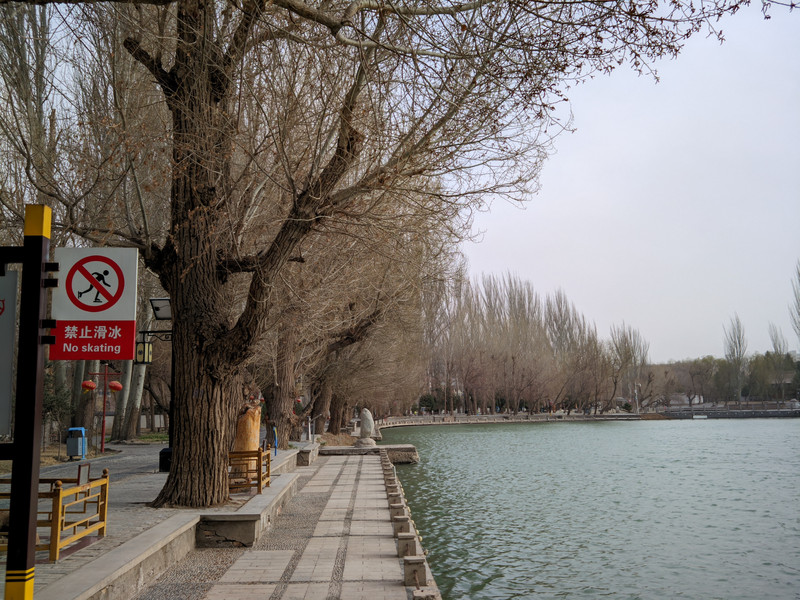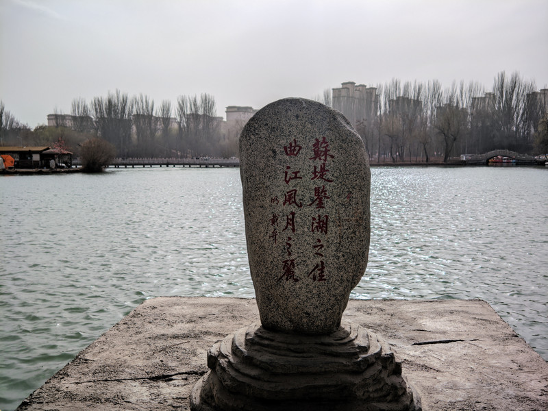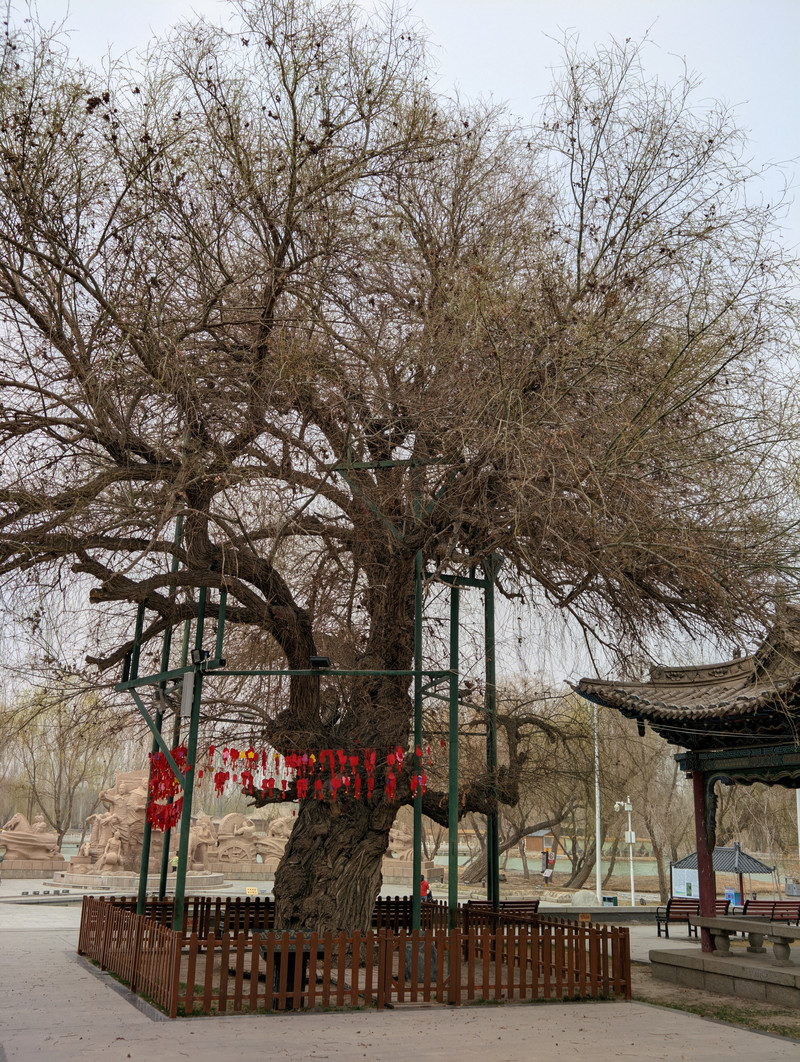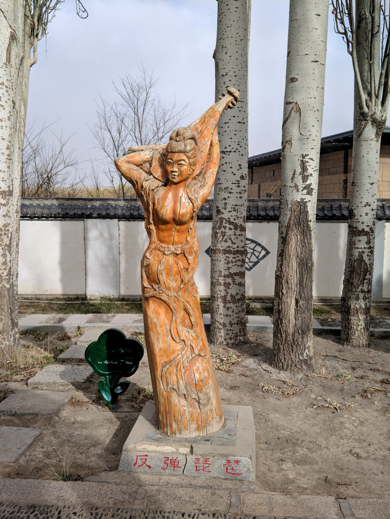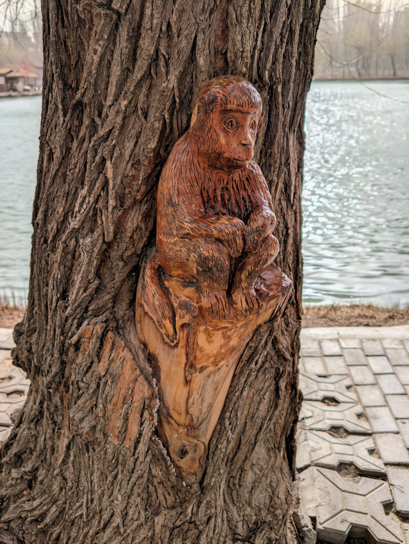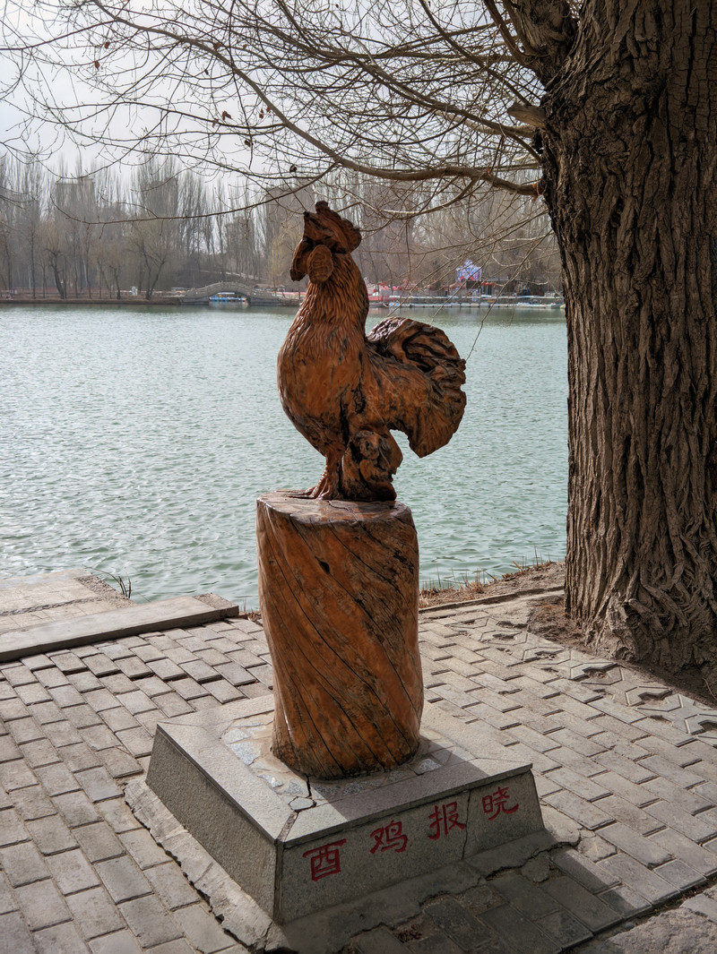湖边有许多木雕,很有意思。木雕是酒泉的非遗项目,后面再博物馆有介绍。