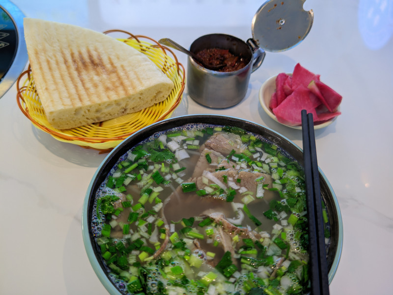 终于吃到了羊肉汤粉,25元。我感觉在酒泉(包括敦煌)出品才好吃,甘肃其他地方的差点。