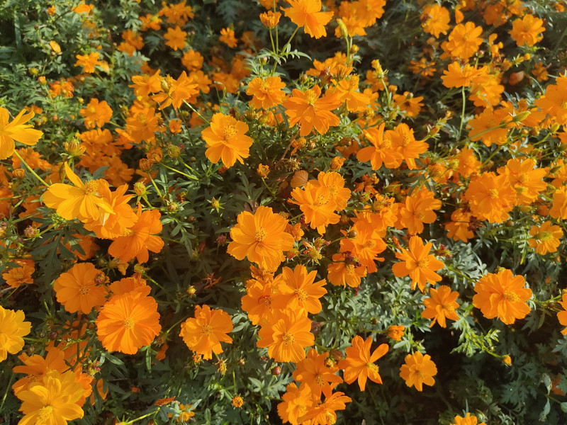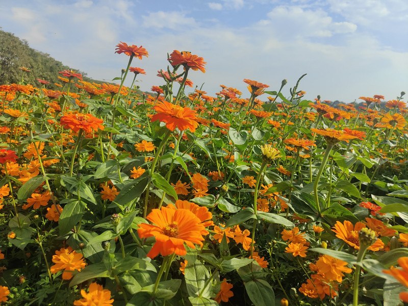 - 花田中还有别出心裁的混搭,如黄色的百日菊与硫华菊杂栽在一起,展现出浑然一体的和谐美。