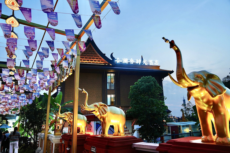 灯光下的傣族建筑极易出片,专业旅拍团队可提供民族服饰租赁及摄影服务,记录“霓虹+红灯笼”的视觉盛宴。