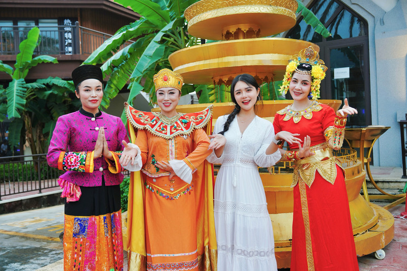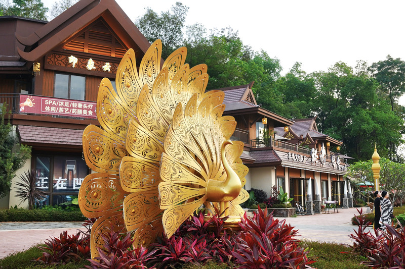 传统傣式建筑以尖顶、雕花装饰为特色,搭配亚热带植被,民族韵味浓厚。游客可乘坐观光小火车穿梭其间,省力且沉浸感强。