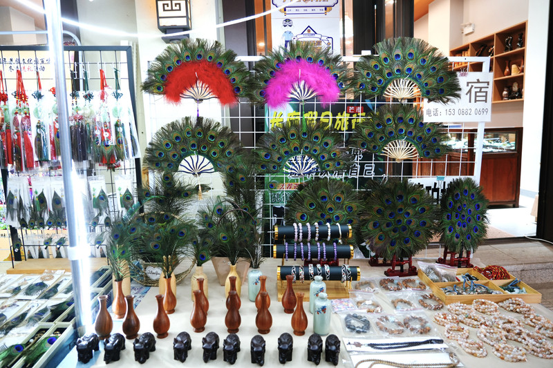 傣锦服饰、手工艺品店展现了传统工艺的精妙。