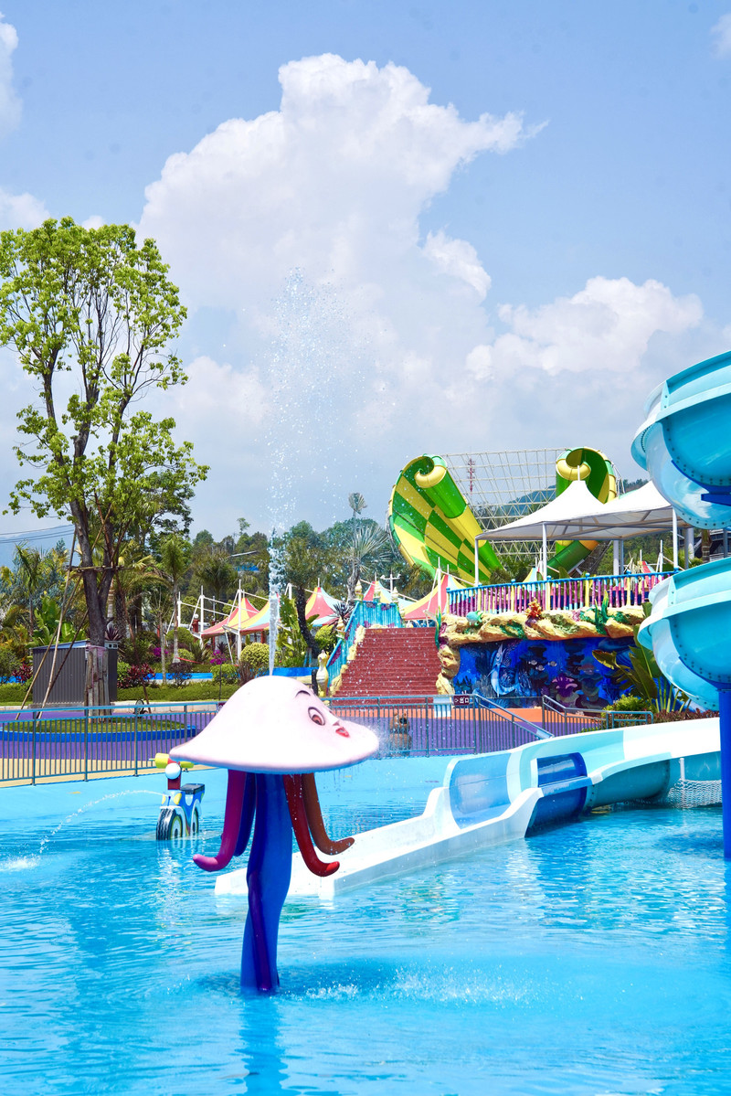 - 娱乐项目:海啸池、深渊滑梯、彩虹滑道、落差式环流河、吊篮滑梯、儿童水寨等大型水上娱乐项目应有尽有,可以尽情探索无尽的水世界,尽享清凉与自由。