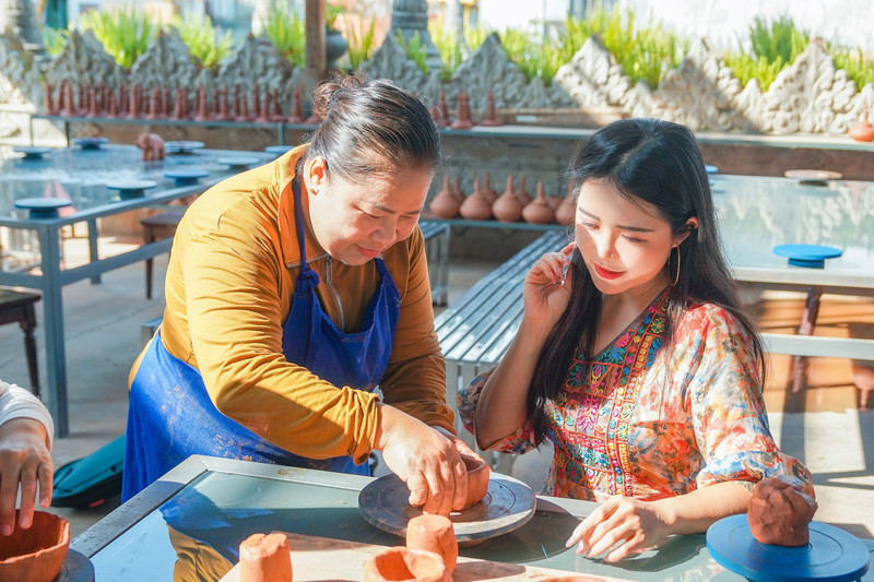 - 制作过程:在张玉工作室,可以体验傣陶的制作过程。不使用现代电动拉坯机,而是在木质慢轮上,仅凭双手的触感和经验来塑造陶坯。制作完成后,可以选择直接带走未烧制的作品或留下烧制。