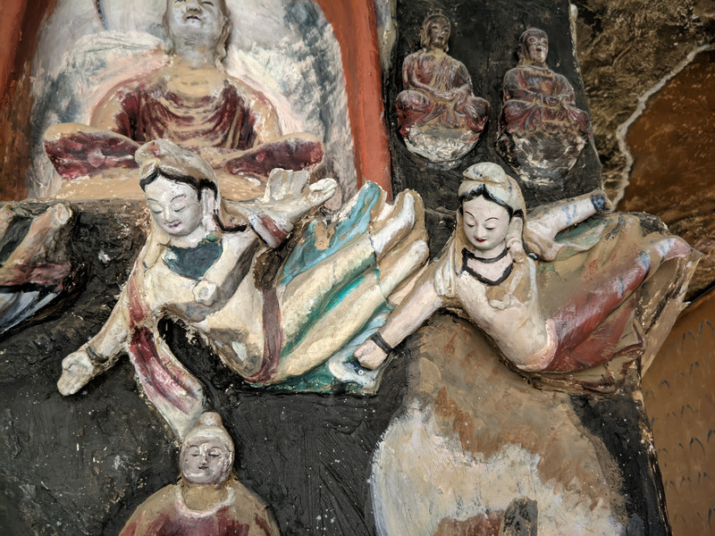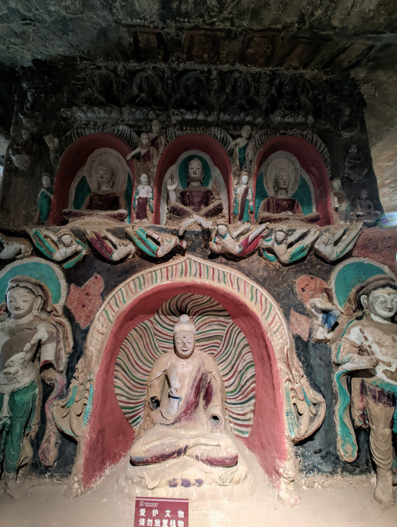 在这里你可以看到中国早期石窟中高肉雕佛的造像风格,一尊尊生动活泼,带着生活情趣的菩萨、活泼轻盈千姿百态的飞天等,为旅行者展示了一幅华丽的佛国胜境。