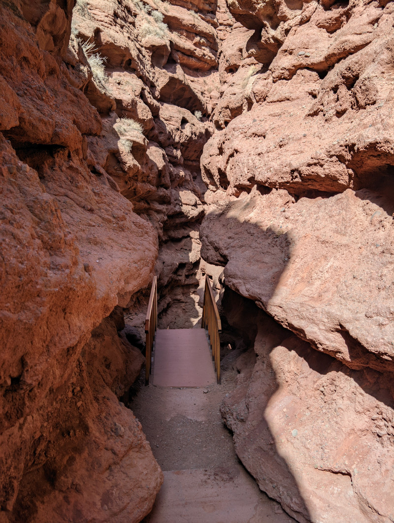 登一线天云梯后,不走峡谷出口方向,而是在峡谷出口的指示右边下灵芝谷,此为隐藏线路。穿过灵芝谷,登一轮铁阶梯(螺旋楼梯)到达4号观景台(出口)。