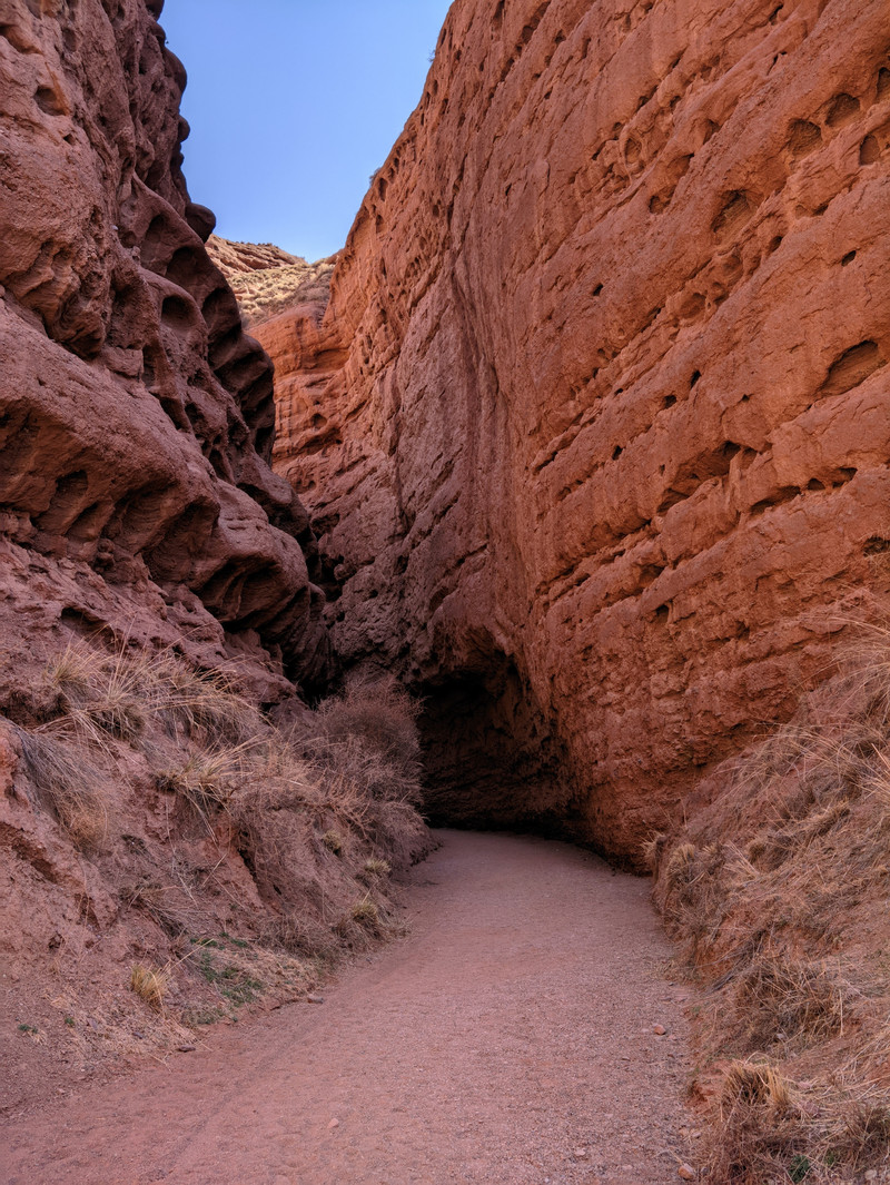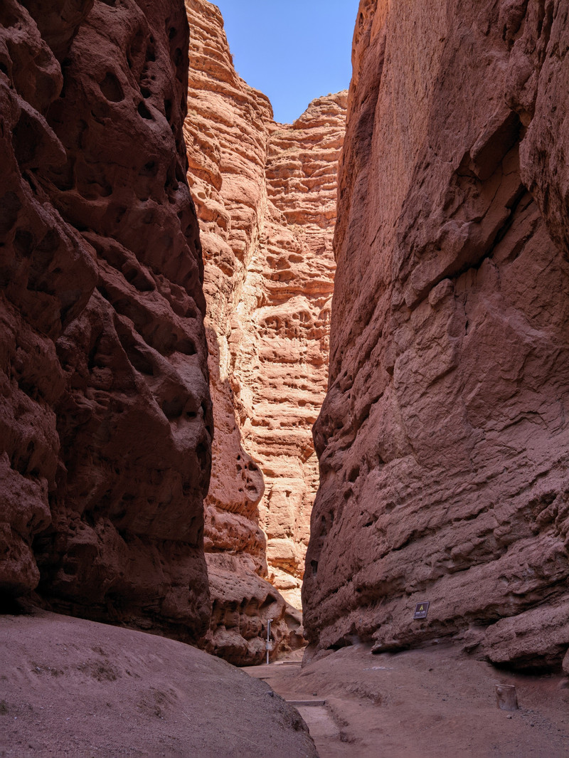 峡谷之内,举头向上,只能看到很窄的一线天际。有的地方两壁夹峙,若非子午,不见日月,有的地方可宽可窄,天际形状会呈现多种多样,有的地方悬石吊顶,摇摇欲坠,相传,此处是古代道家引渡升天之地,又名“渡仙峡”。