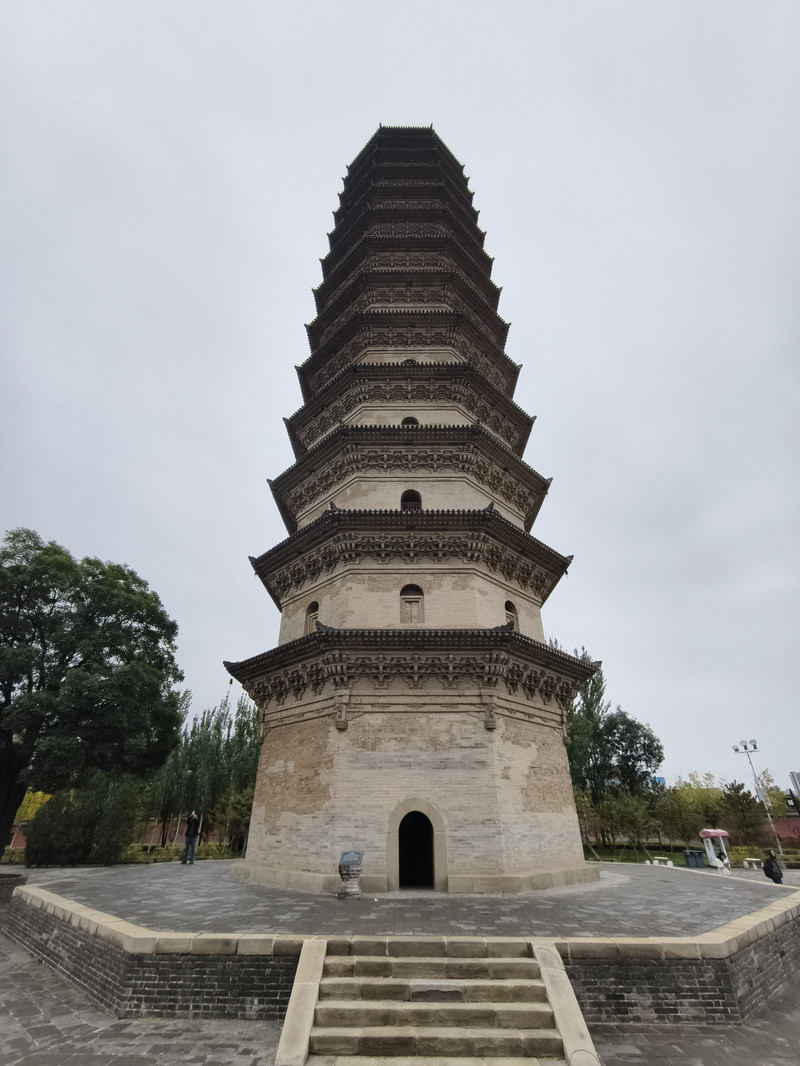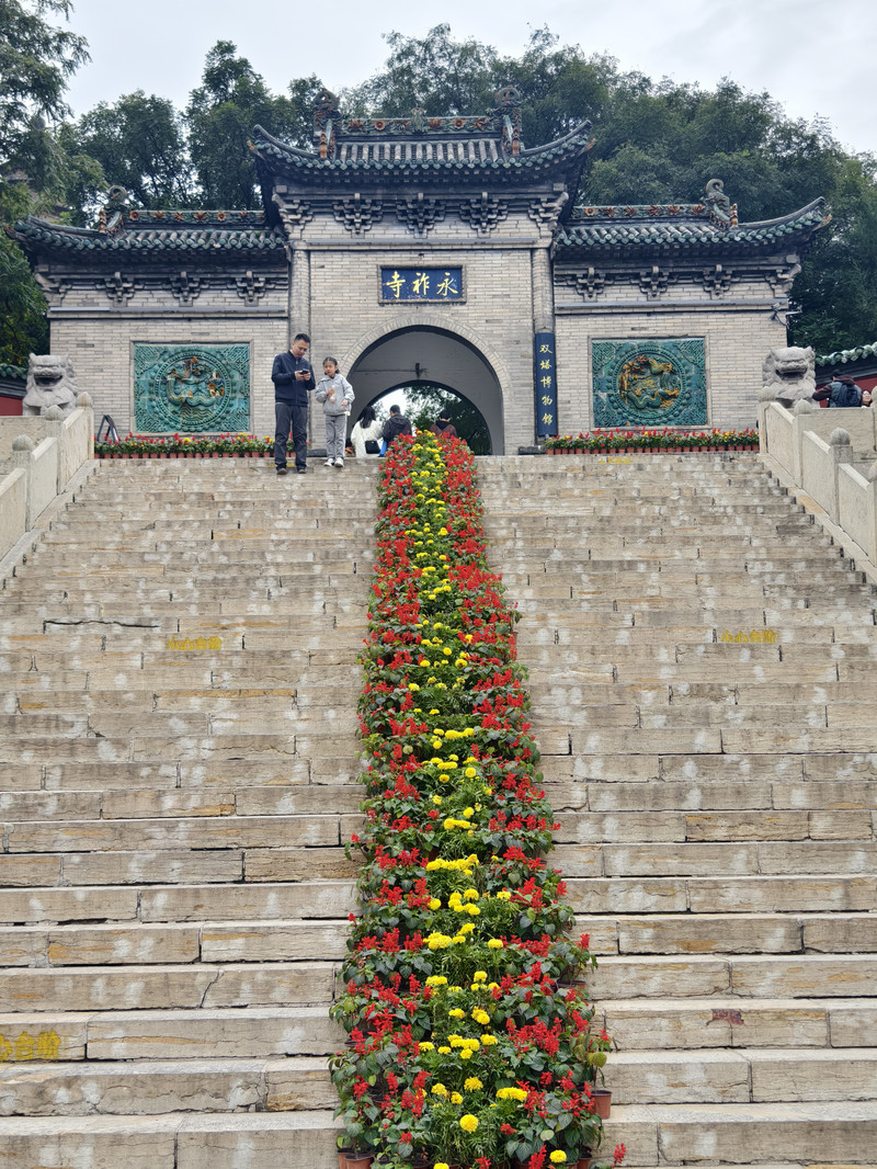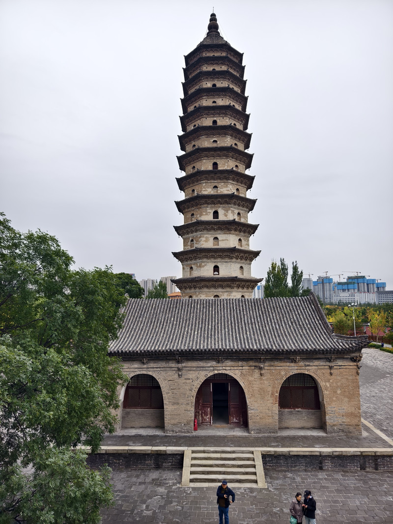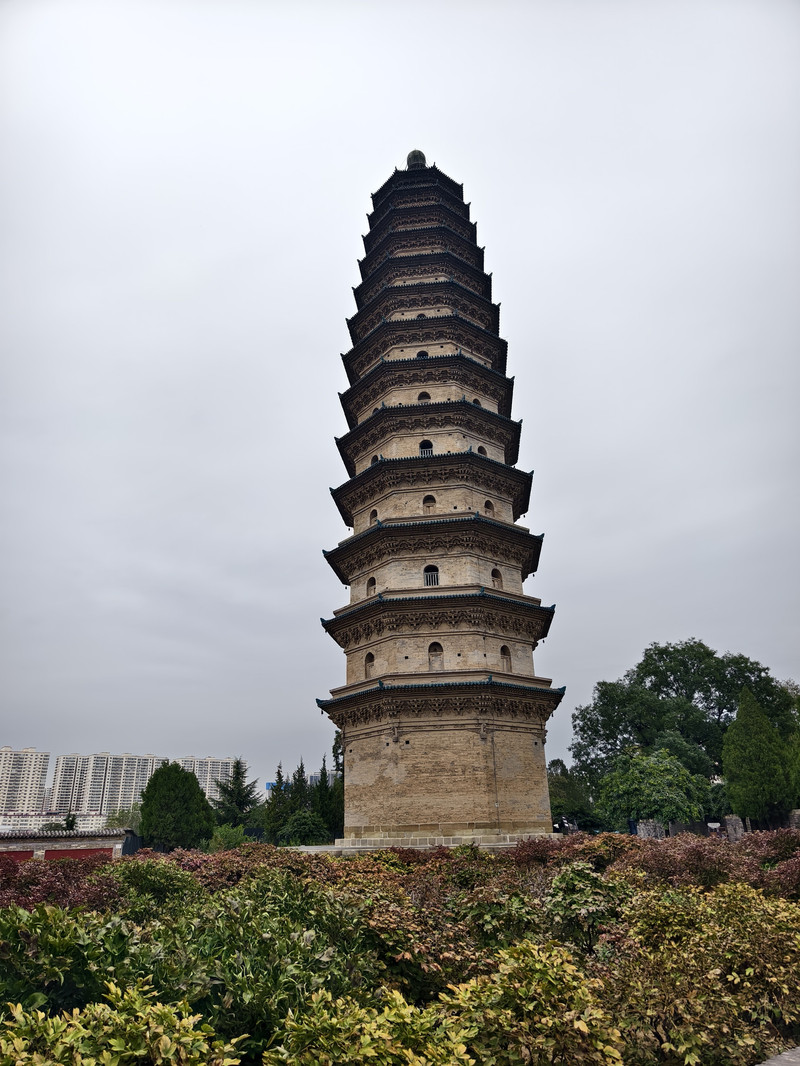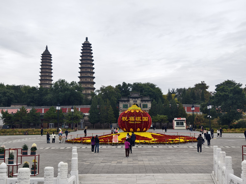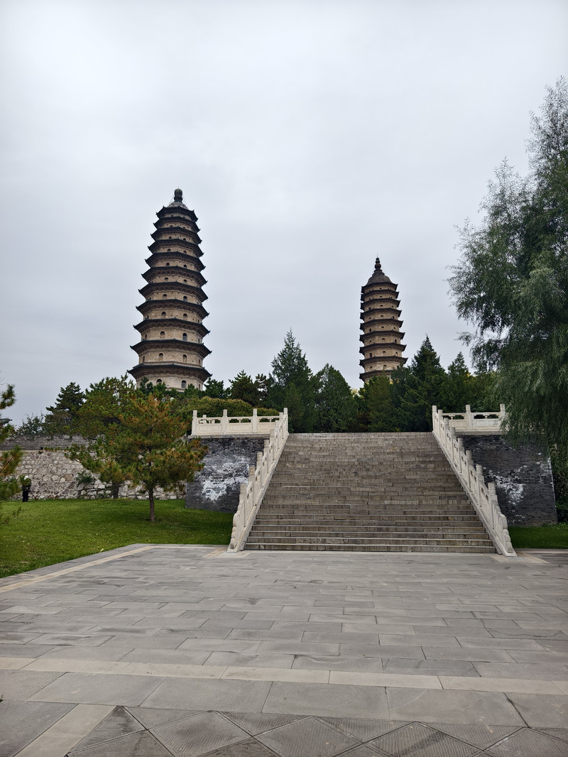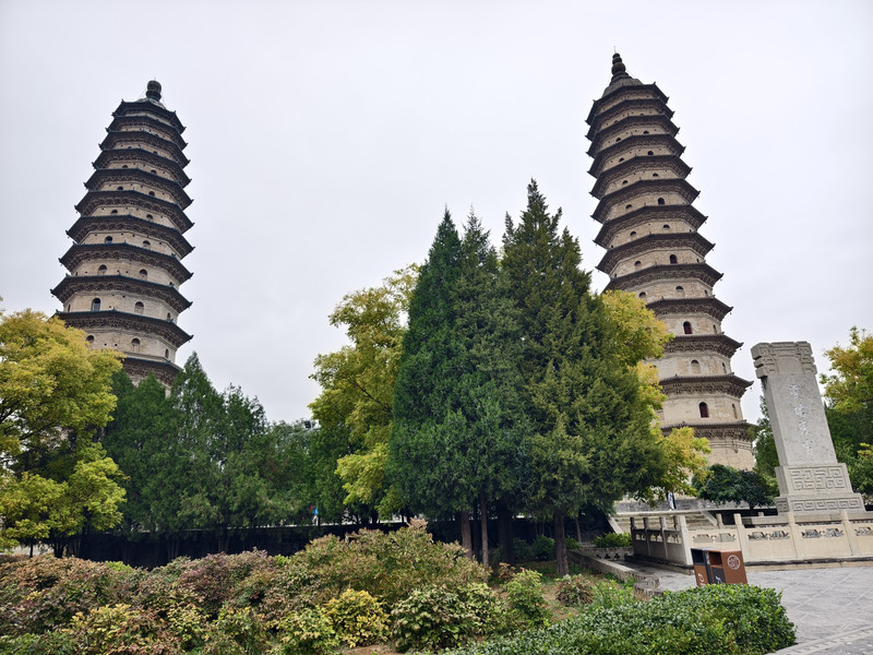 吃完早饭,打车去双塔公园,这天降温,还是阴天,体感特别冷。去双塔公园主要是参观永祚寺及里面的双塔。