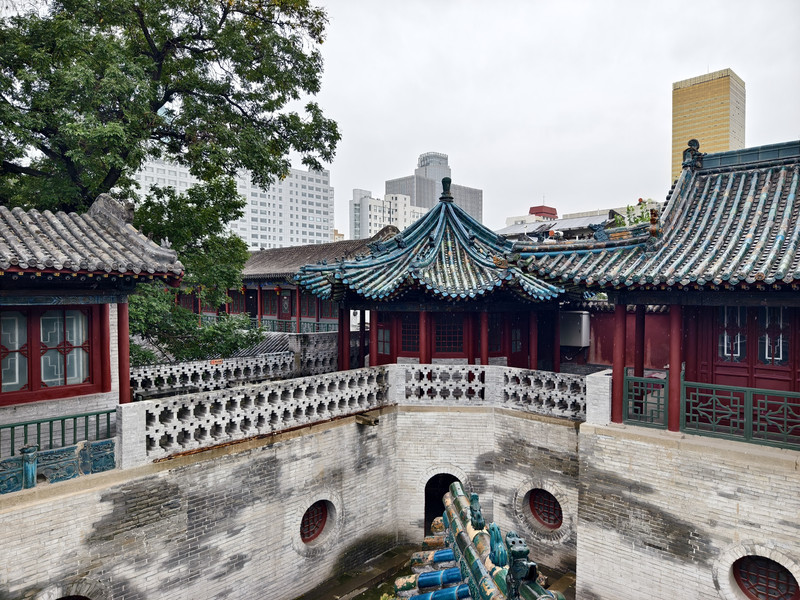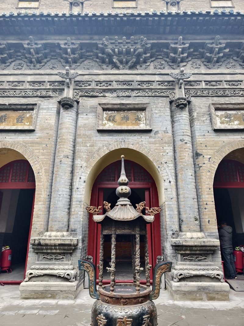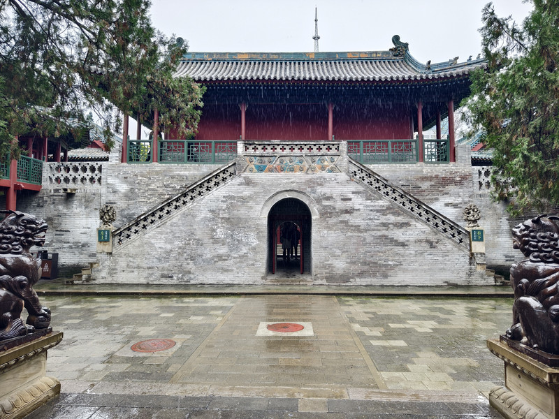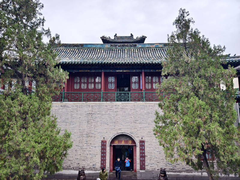 绕过二进院的弥勒坐像,就来到了三进院。院中央的纯阳宫吕祖殿,建于明代,为宫内主殿。这座造型质朴刚劲中透着玲珑娇巧的建筑,规制极高,是现存明代建筑中的珍品。
