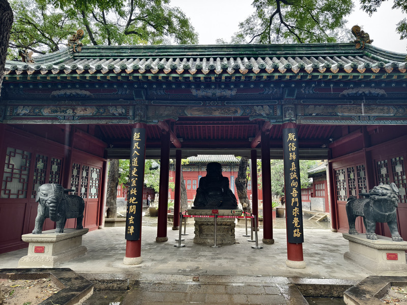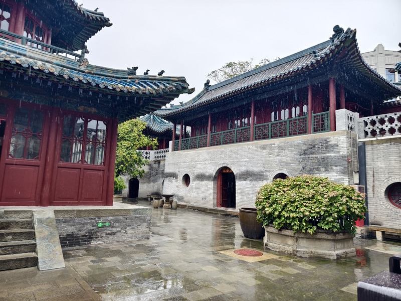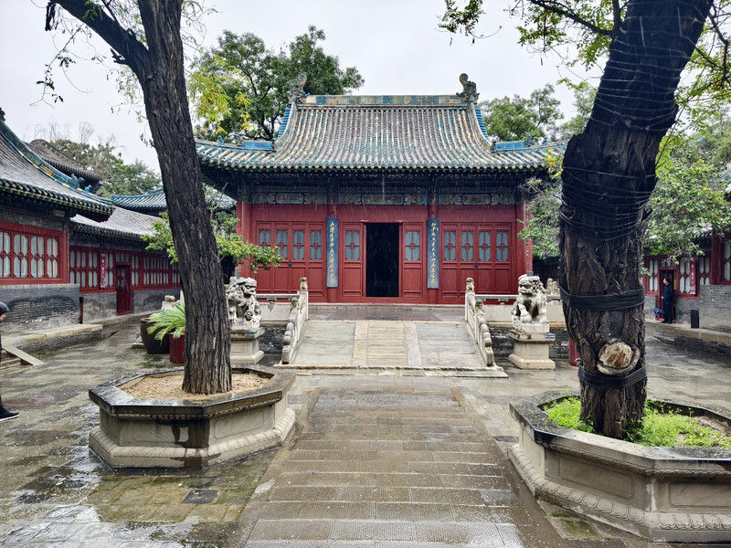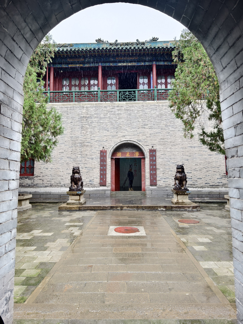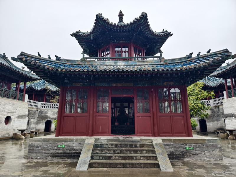 冒雨去五一广场附近的纯阳宫参观,这里也是山西古建筑博物馆,整个建筑群造型独特,上下左右对称,只看建筑就觉得很美。除了欣赏建筑之美,感受浓厚的宗教氛围外,里面还有袖珍园林,花木掩映,红墙绿瓦,别有一番风味。九宫八卦院、涅槃变相碑、长阳天尊像为纯阳三绝。里面还有众多文物展示,其中有两件不可对外展出文物就是三绝的后两绝。。
