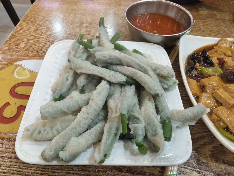 豆角沾片15元/份,这个是当地特色,豆角裹面蒸熟,第一次吃,要蘸调料,味道一般。