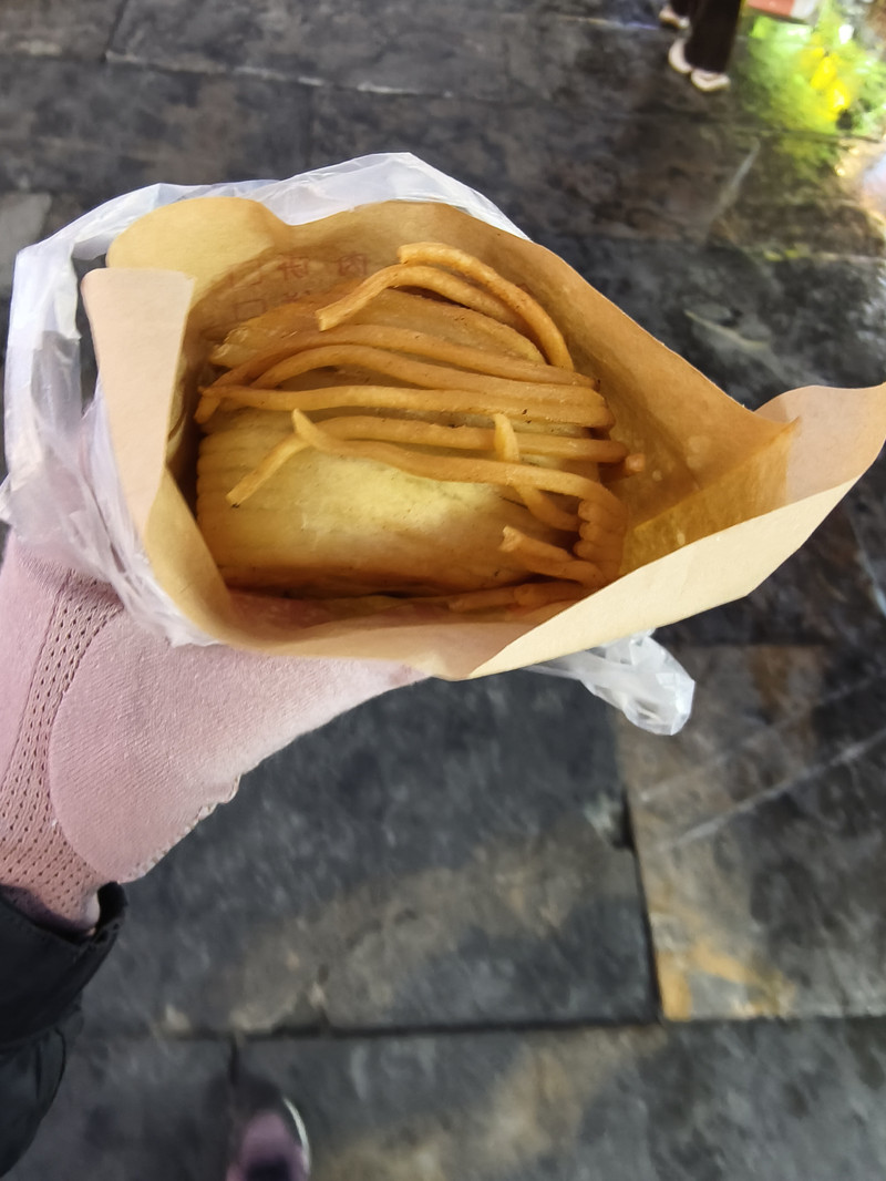 早上出来到现在 ,还没吃点东西,看这家排队人多,排队买两个尝尝。