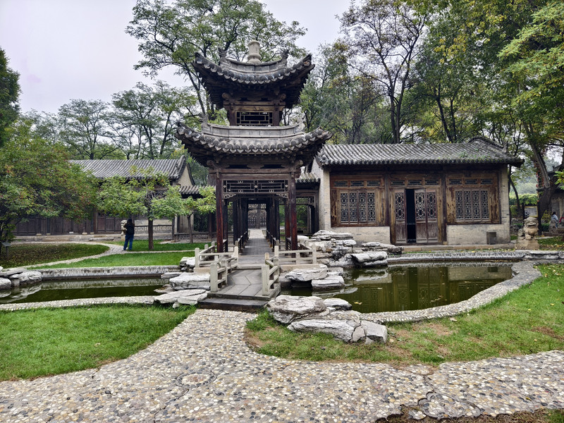 水系与亭廊:园林内溪流环绕,亭台楼阁点缀其间,砖雕影壁与格言警句凸显文人意趣。