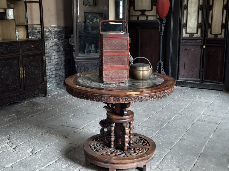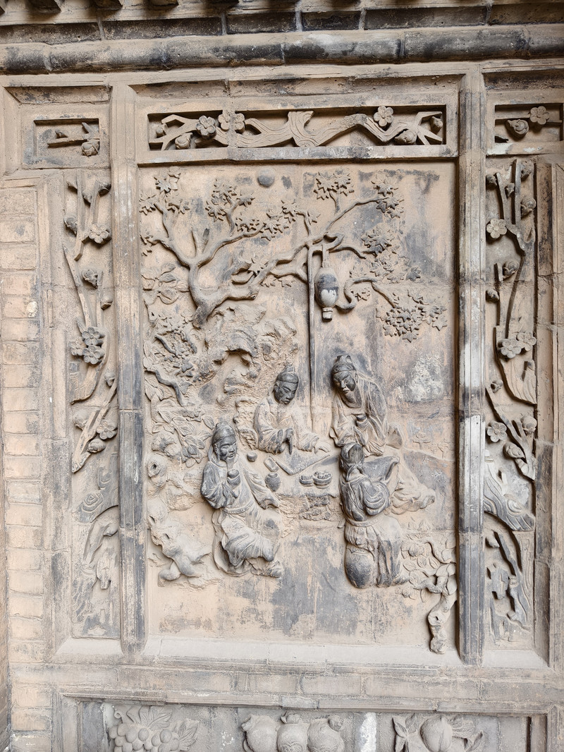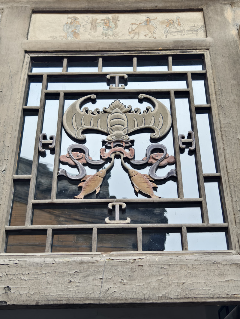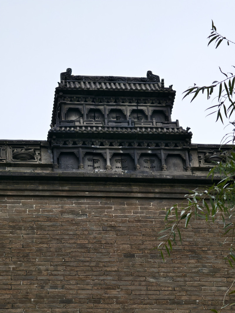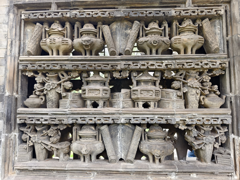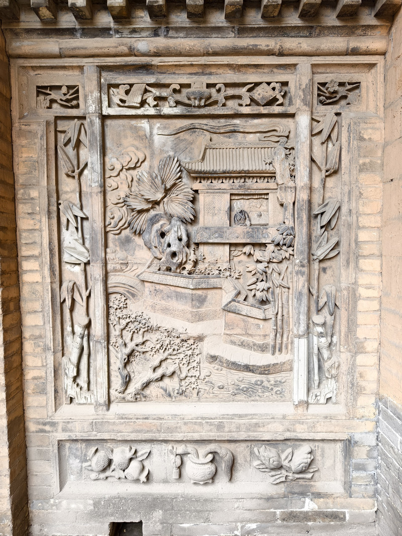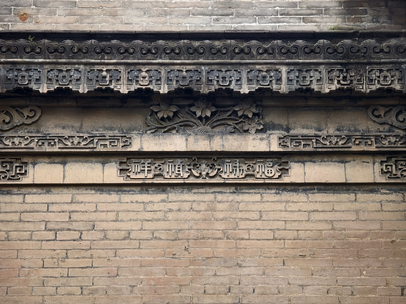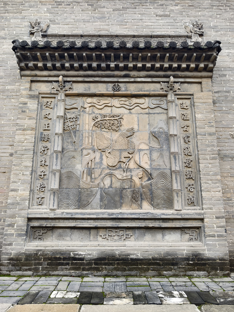 建筑群以砖、木、石雕闻名,门楼采用双层矮空博古图砖雕,影壁雕刻道德经格言,祠堂门楼设“恩荣”石匾与蟠龙旗杆,细节体现高雅艺术追求。