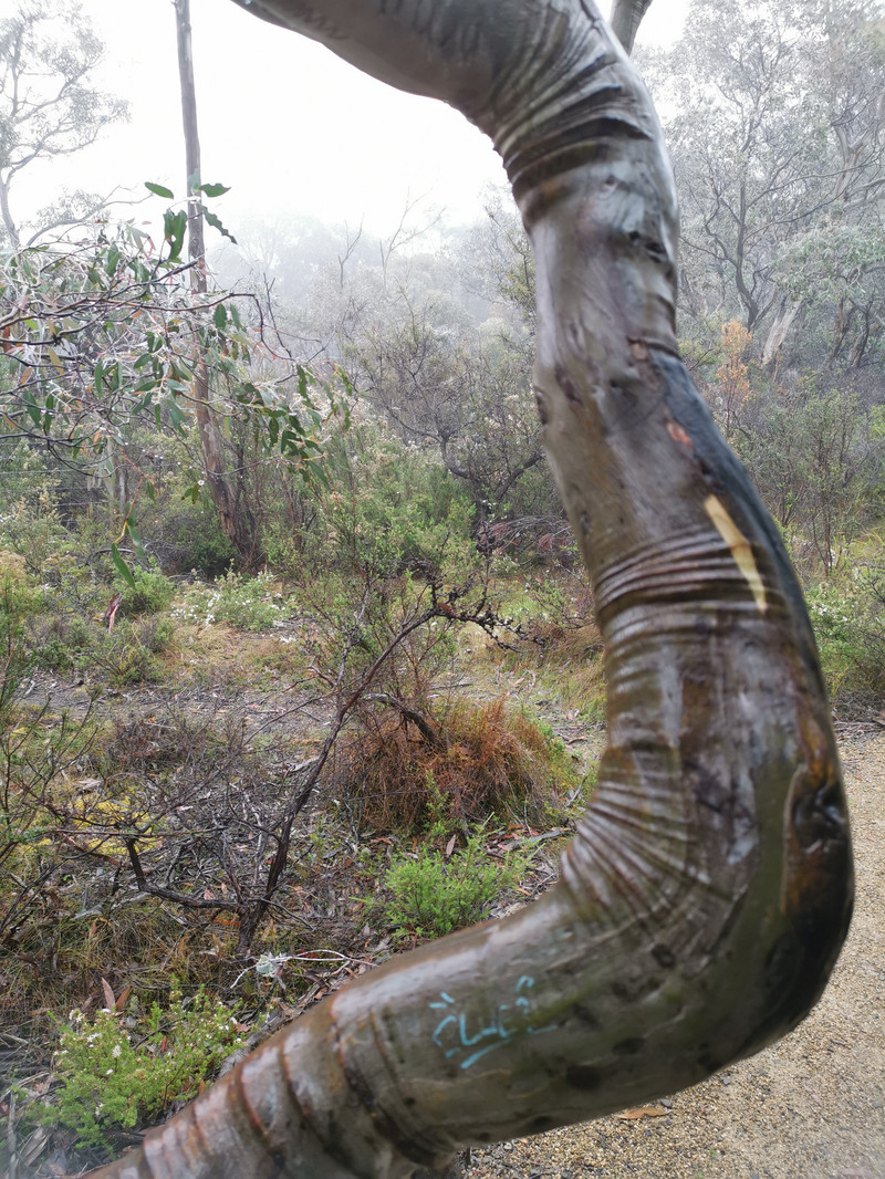 高架于温带雨林间的悬桥,春季树冠层新绿,偶见针鼹觅食。