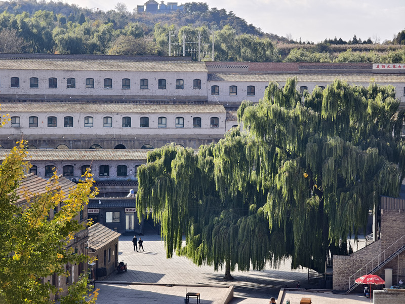 站在高处看火车皮排房,还挺壮观的。右侧的柳树称为乐人树,粗壮、高大。