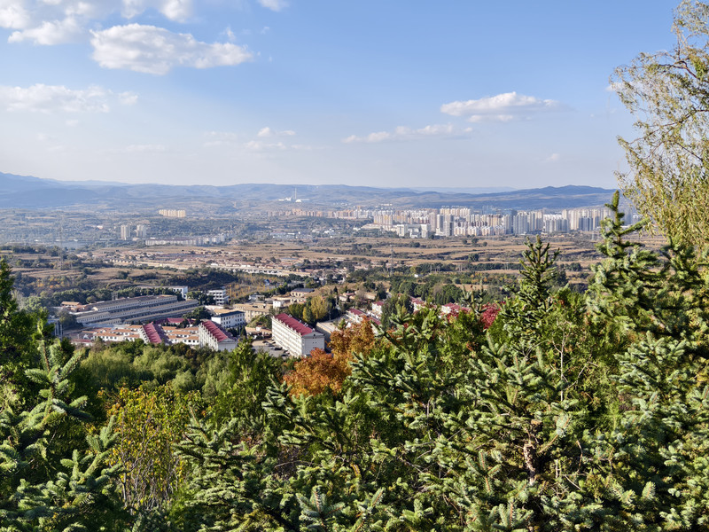 站在虎头山观景平台上看,近处是大寨新村、大寨村,远处是昔阳县城。
