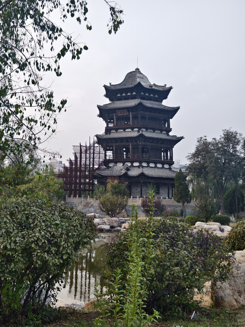 远远的看看文昌阁,正在维修。一层为文昌阁,二至四层为藏书楼。能看出此阁明显地向西北倾斜。