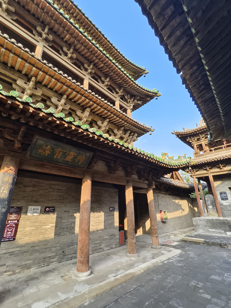 下午3点离开常氏庄园,开车去榆次古城。大约40分钟到达榆次古城,如果只是逛古城不需要购票,门票半价40元/人,可以看5个景点,城隍庙、西园、文庙、榆次府署、凤鸣书院。古城面积挺大,古城的5个景点分布在东大街到西大街的一侧,相对集中,我们只看景点,古城的其它地方没去,最值得看的是城隍庙。