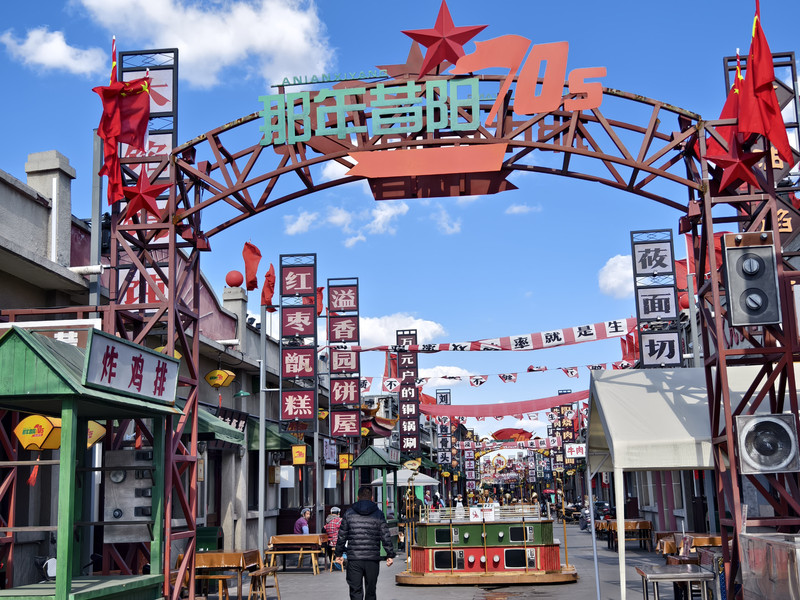 经历过哪个年代的人,总是喜欢怀旧,不是怀念那个年代,只是对经历过往的一种回忆和情怀。街道两边都是六、七十年代的样子,标语、口号多,以饭店、小吃居多。