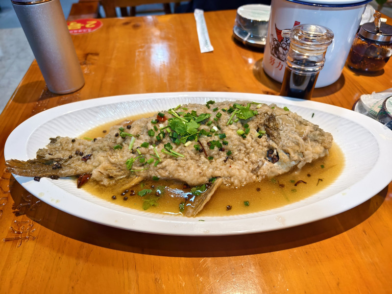 太累,不想走远,附近没有看到当地的特色饭店,就在酒店旁边的一家饭店吃的晚饭,河南口味,点了一条鱼、白菜炒肉、小烧饼,消费70元,味道不错。