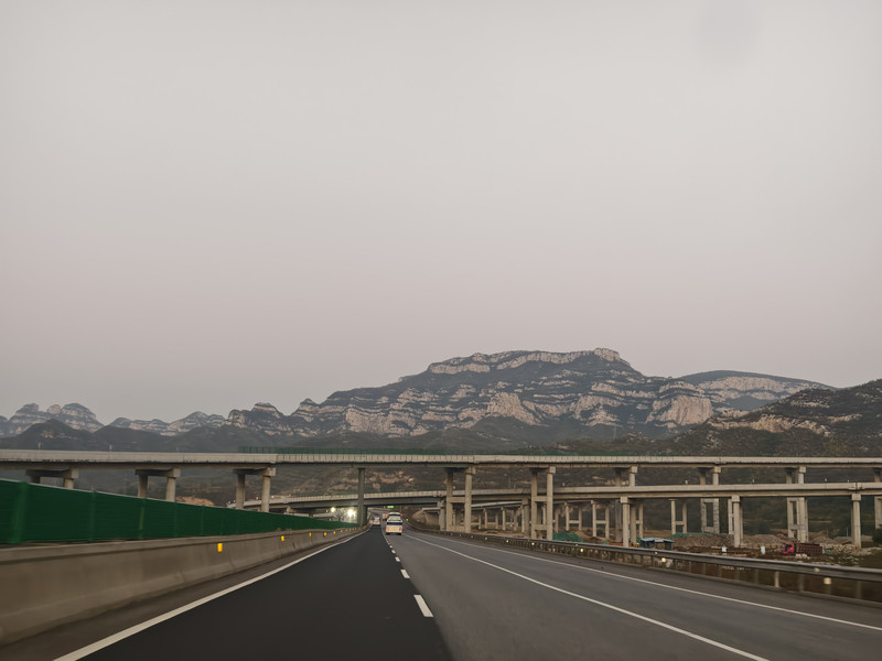 下午4点离开关城景区,开车去河北正定。刚走了一小段。遇到前方堵车,听说已经堵了2个小时,主要是大货车多,不等了,原路往回走,再往河北方向走,因为时间有点晚,决定走高速,结果还没上高速又遇到堵车,基本全是大货车,从4点40分开始,等了半个小时一动不动,问了在路口执勤的交警,告诉我们路口的另外一条路目前畅通,可以在南防口上高速。我们目前等的这条路再过10分钟就能通了,但车太多,什么时候能上高速还难说。调头走另外一条路,下午5点40分从井陉矿区口上高速,天已经有点黑了,好在很快就进入石家庄环线,有路灯了,晚上6点半到达正定,我们订的酒店在古城内。