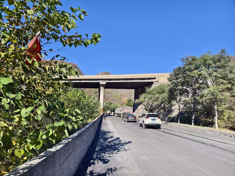 9点前离开阳泉市区,往固关长城方向走。走的是山路,前面还挺顺利,走到离固关长城大约还有2公里时,遇到前方修路,无法通行。下车问问,说中午吃饭的时间会放行。当时挺矛盾的,这里是太行山区,路少,如果折返一是要放弃固关长城这个景点,二是折返要再走到接近阳泉市区的地方,走另一条路到娘子关。我们是10点15分到达修路处的,觉得11点半大概会吃午饭,算了一下,折返和在此等待的时间差不多,决定在此等待,有些车不等了,掉头折返。等到11点半还没有放行,后悔没早点折返,这会再折返又怕这里很快会放行,在焦急的等待中,12点半终于放行了。