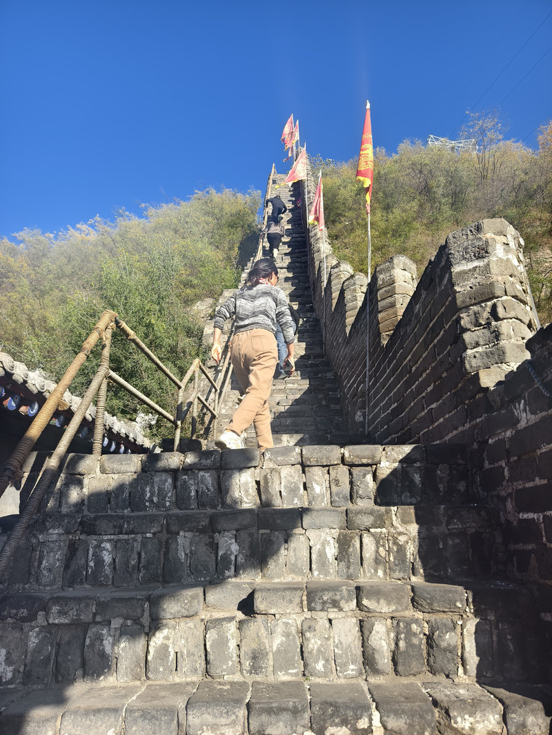 从这里登上长城,目测坡度有70度,因为太陡,只能上不能下。