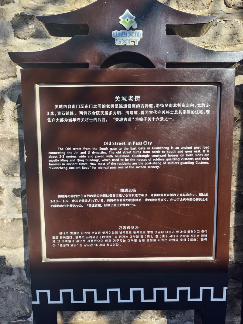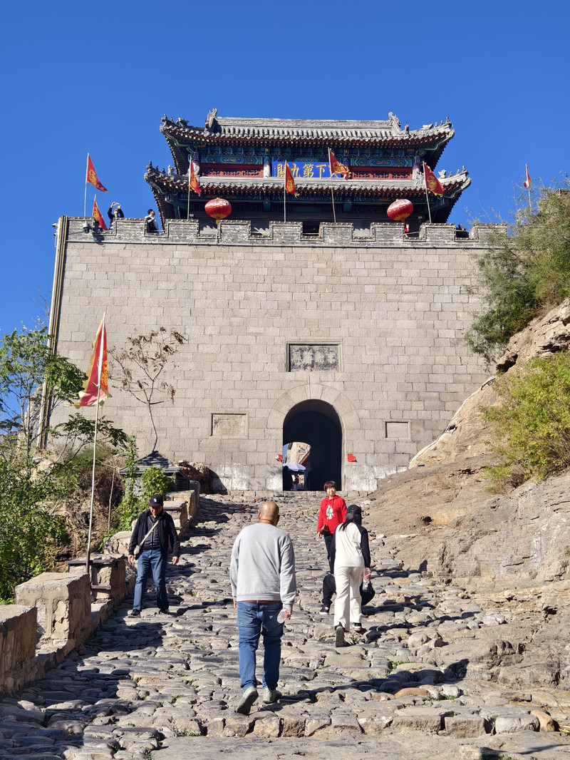 - 参观体验:娘子关作为晋冀的咽喉要地,其关城建筑雄伟壮观。我们参观了南门、东门以及关城老街,感受到了古代军事防御的严谨与庄重。特别是登上长城,虽然坡度陡峭,但俯瞰四周的景色,让人心旷神怡。