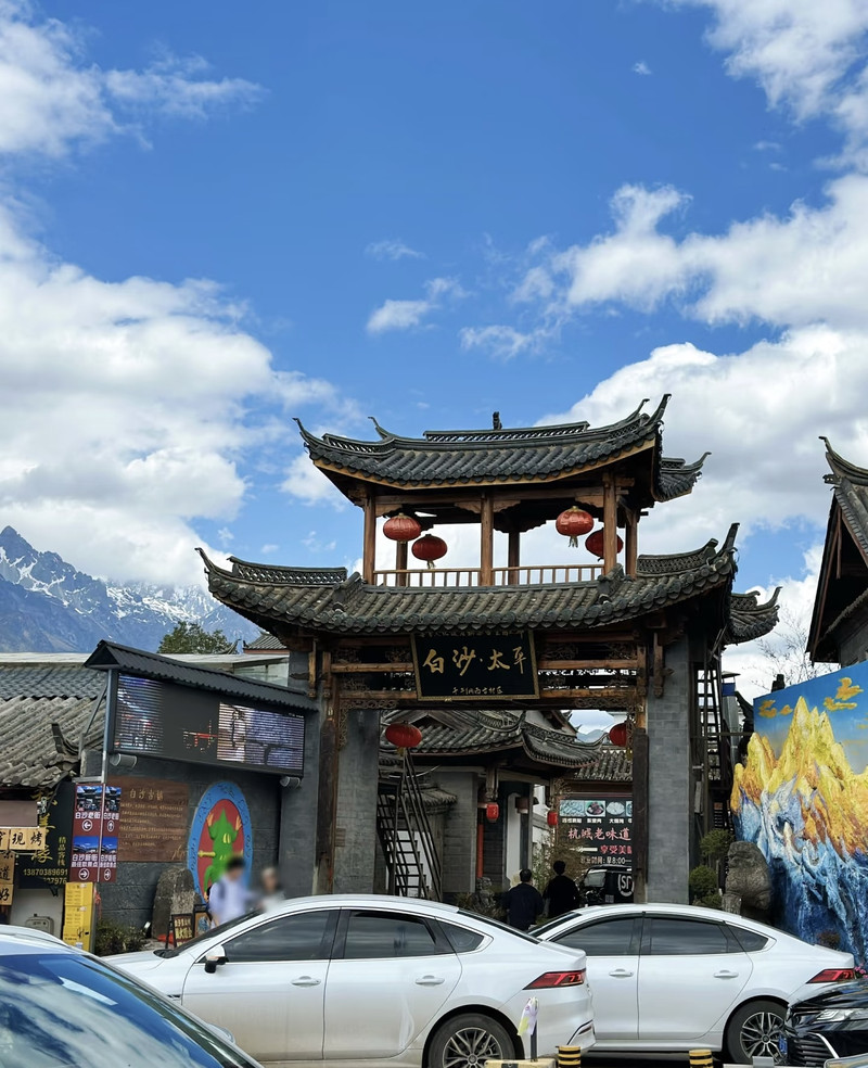 丽江的纳西古都·白沙古镇,与束河相比,商业氛围其实差不多,但也有着独特的魅力。打车过去直奔网红咖啡馆,排队拍雪山同框照。听朋友推荐买了【粮豆家】的咖啡豆,想买的面包店没开,想吃的耗牛肉串店售罄,路边吃了烤乳扇,吃了小香锅后就换酒店休息啦。
