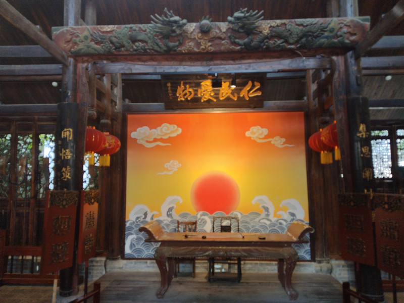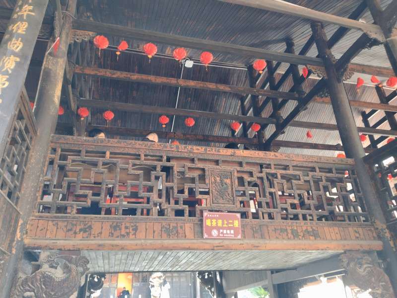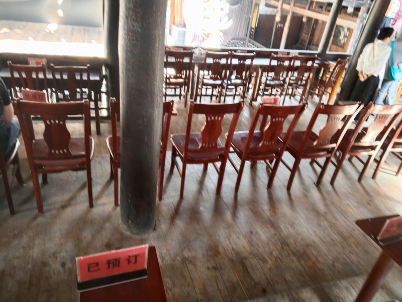 回到二进堂戏台。这里十点开始演出了。中间的好位置要消费茶水才能坐。
