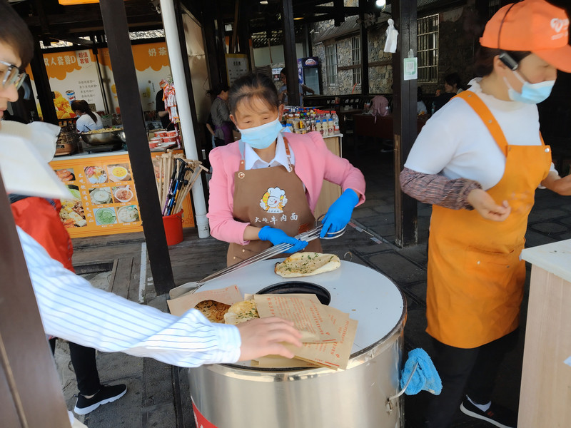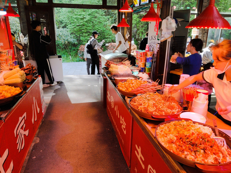 到中楼门了,到这里走了大约三分之一的路程。在这里吃点东西,歇一会。东西也不算太贵。有炒饭,腊排骨,烤肠等等。我们买了一份炒饭,两根烤肠,一共四十。还接了一杯热开水。
