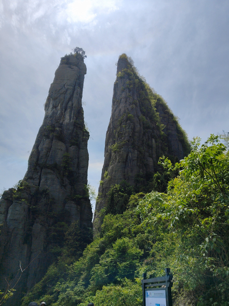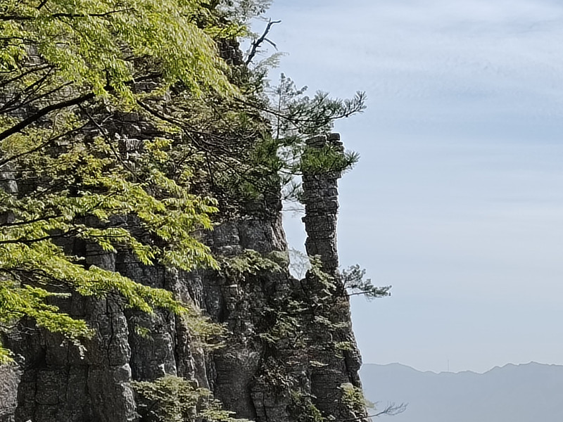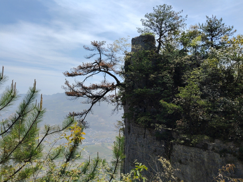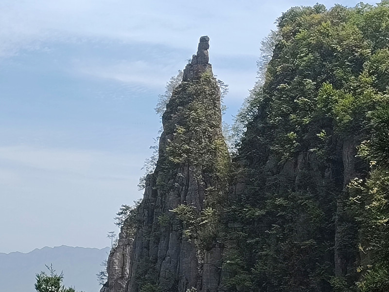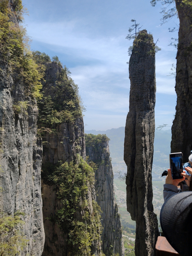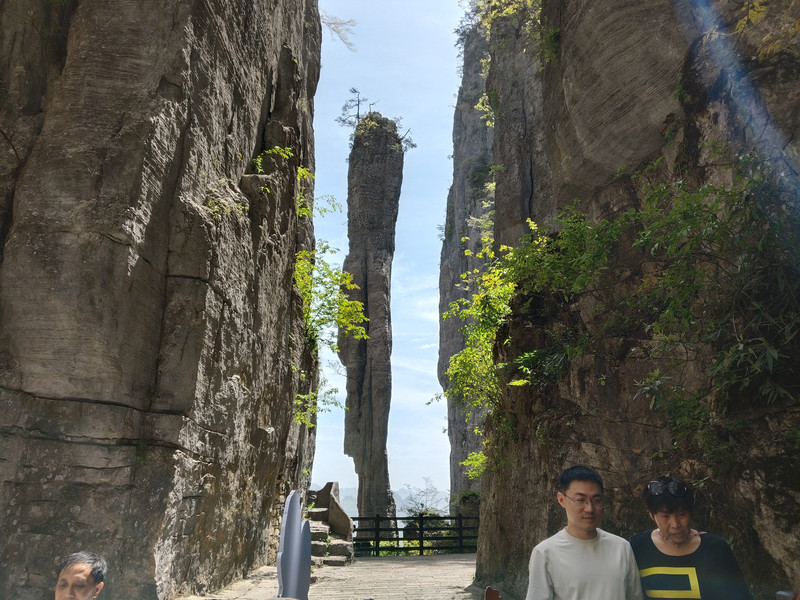 一炷香高150米,只有4米宽。真的像一炷香插在山谷里。从这个角度看视野还是不错的。这会要想最佳角度拍照,得要排队半小时以上,而且要付费。我们不去凑这个热闹了。