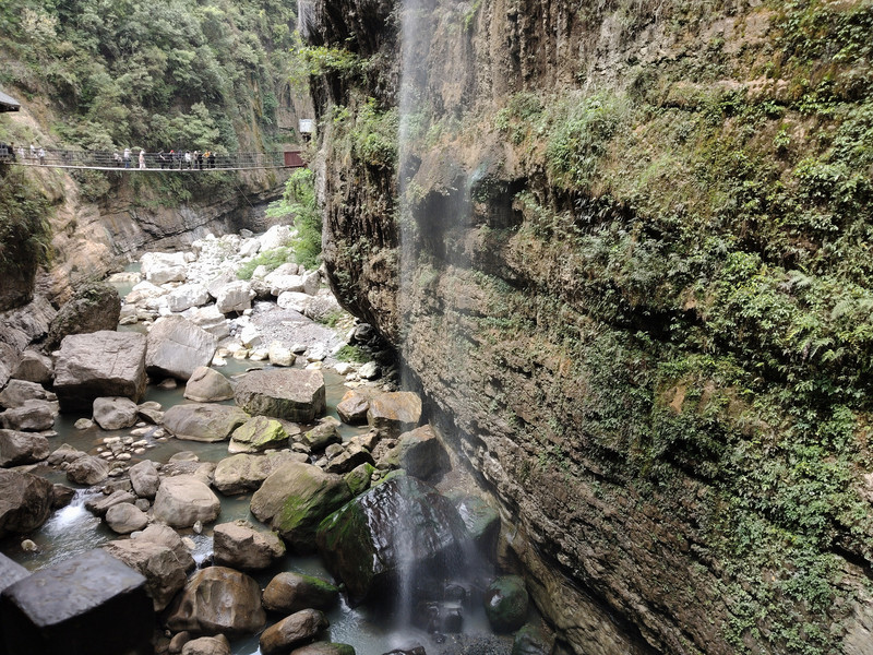 峡谷里很潮湿,石壁上长满了蕨类植物。