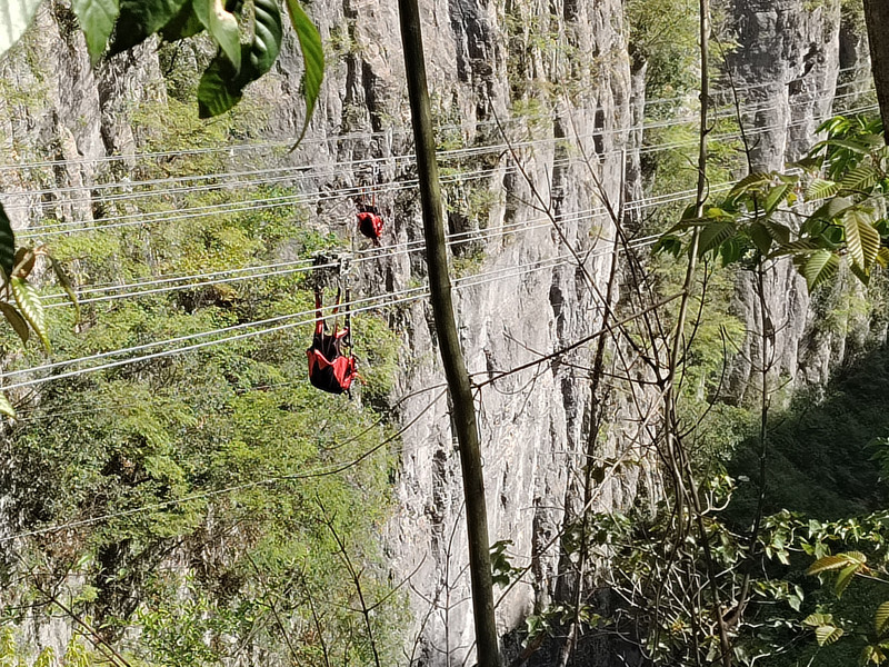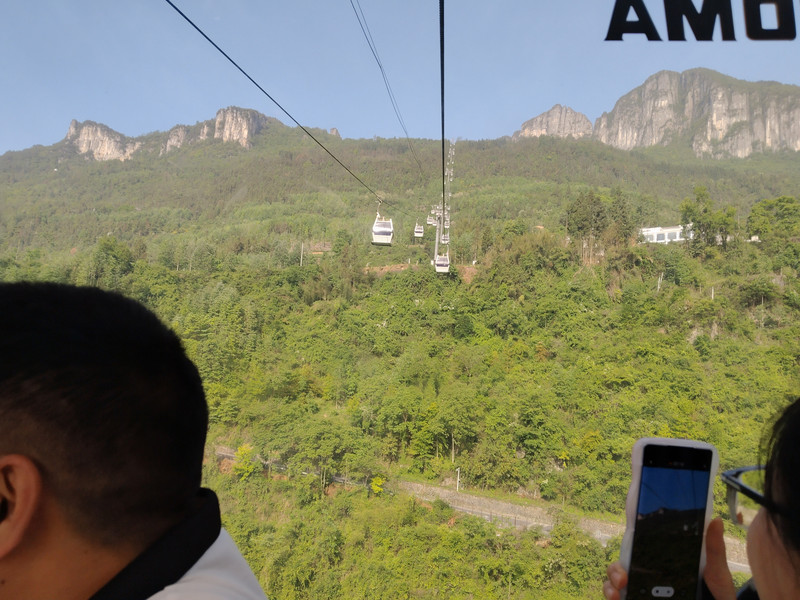 索道全长两千多米,落差七百多米。七分钟就到山上了。穿越在峡谷当中,欣赏美丽的风景。