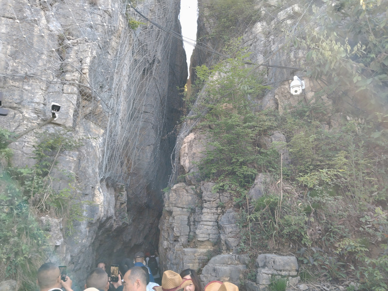 一线天到了。感觉这个一线天比黄山的一线天好走多了。没有黄山的陡峭,通过时也宽敞多了。