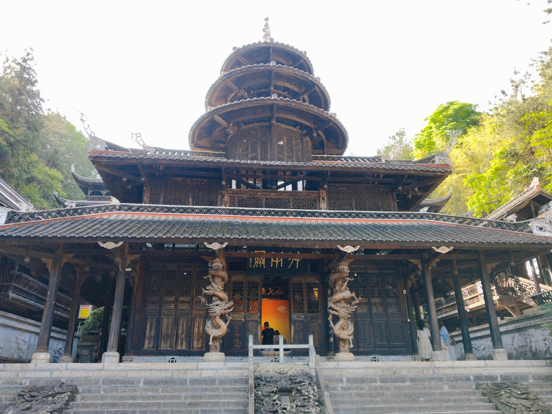 进去后往上走,左侧山上是廪君殿,是一座祠堂。里面供奉着土家族的祖先。上去后顺着栈道走可以到九进堂最高处的城墙。