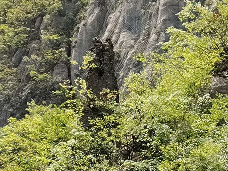 祥云火炬到了。原来是和山体一起的,经过多年的地质变化,中间就剥落了,形成了火炬形状。真是大自然的鬼斧神工。
