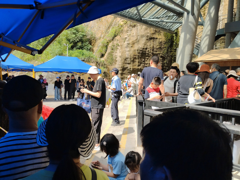回到索道站这里,排队的人还是不少。今天上午十点开始窗口停止售票,线上上午七点停止售票。咋还会有这么多人。
