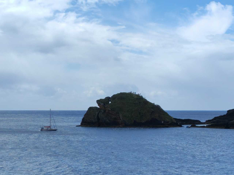 开到海边,刚下车,一阵大雨,马上逃回车里。等了快10分钟,雨停了,赶紧下车遛弯。远眺海中小岛像极一条巨鲸,隐隐约约看到有船只在圆弧的出口处游弋。蛮想去看看的,据说每年夏季6-9月,游客可以乘坐从塔加雷特码头出发的渡轮到达。但现在不是季节,只能作罢。