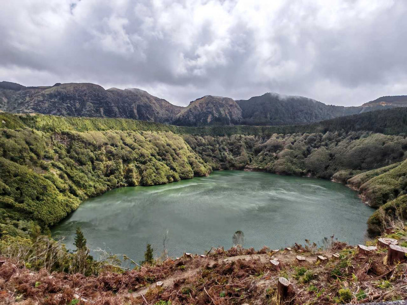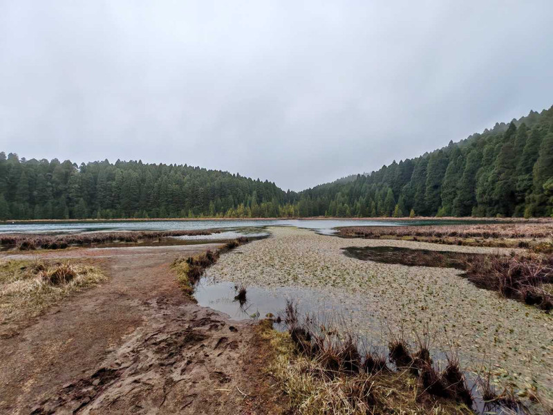 终于大风吹走了这片云层,总算不下雨了。这里是Lagoa do Canario可以沿着树林走到湖的另一边,我们决定再往下一探。