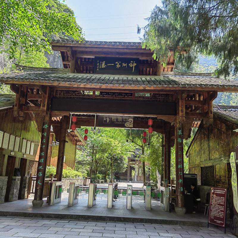 这是百丈漈景区的南门,一般游玩百丈漈景区,都是从北门进南门出,因为这样是全城下坡路。