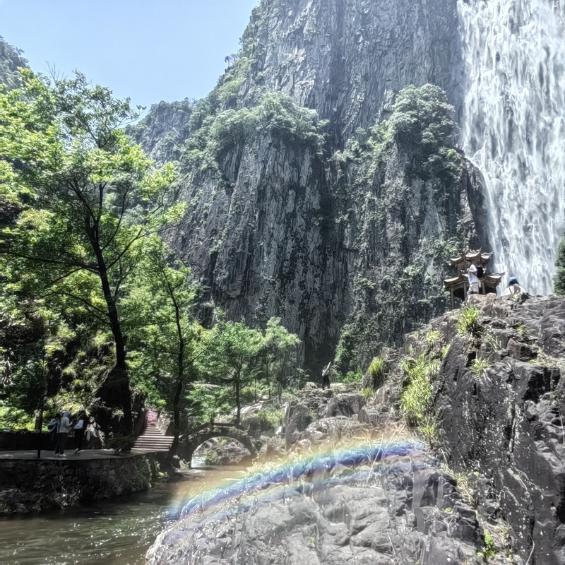 一漈(核心瀑布):单级落差达 207米(经大世界基尼斯认证),宽30余米,水流如银河垂地直泻深壑,水雾漫天、声若怒雷。晴日可见彩虹,阴雨天则云雾缭绕如仙境。