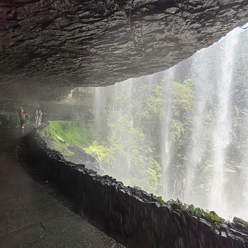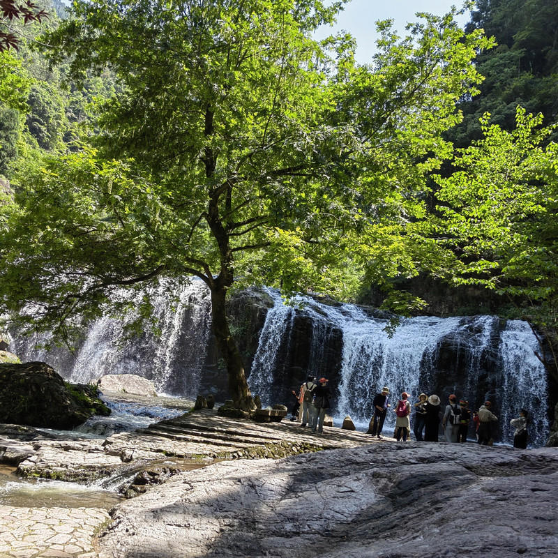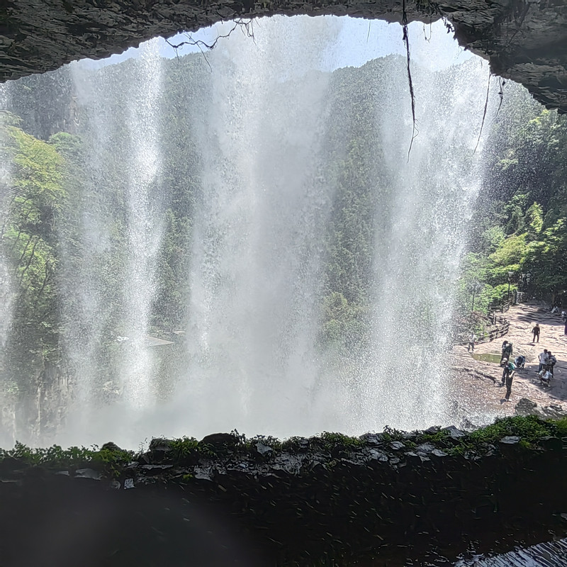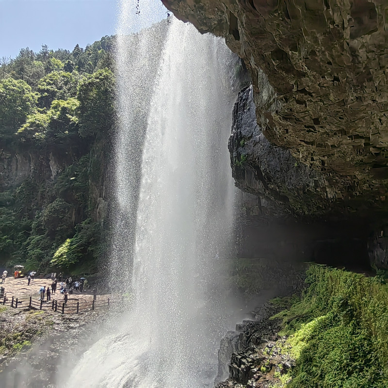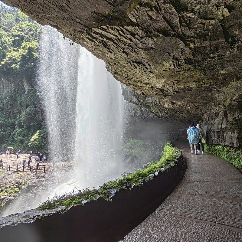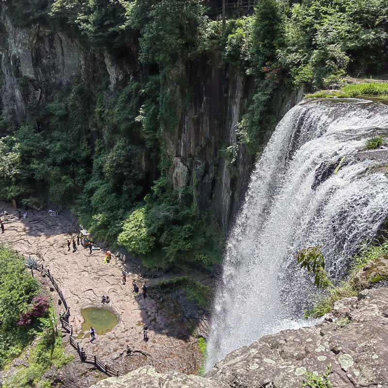 二漈是百丈漈的一大亮点,其高达68米,宽50米多的瀑布分为上下两折,展现了大自然的鬼斧神工。上折高25米,瀑布后隐藏着一个天然通道,形似月牙,口高2.6米,凹处深达8米左右,长达40余米,末端则又延伸出80多米。这样的自然景观,让人不禁感叹大自然的神奇与美妙。