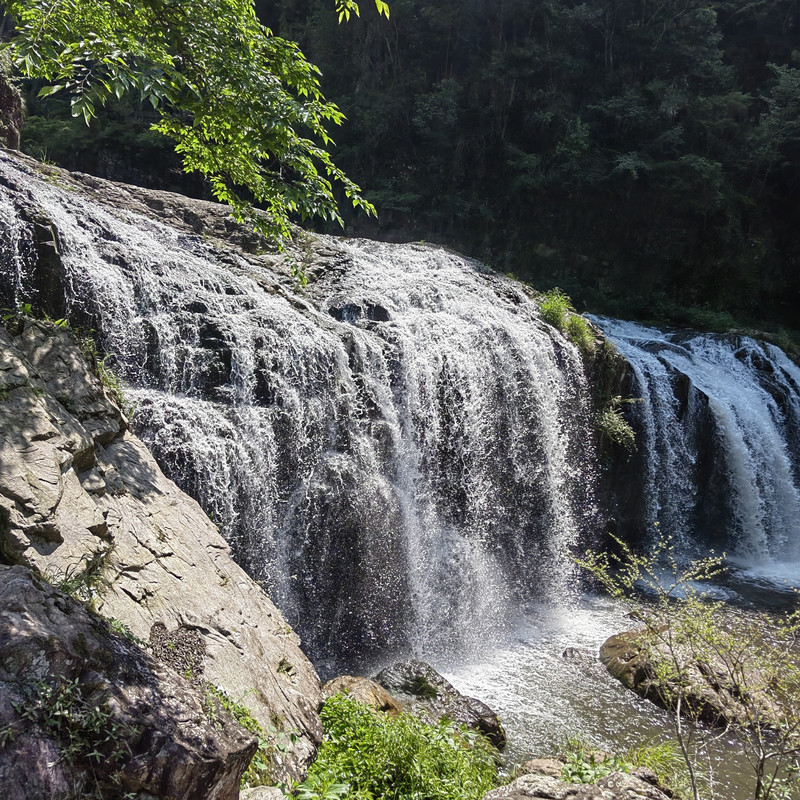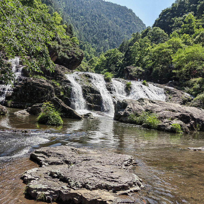 抵达三漈后,我们被眼前的景象所震撼。三漈的瀑布虽然不如二漈那般高大,但却有着别样的风情。瀑布的水流轻柔而细腻,仿佛是大自然精心雕琢的艺术品。周围的山石、树木、花草,与瀑布相映成趣,构成了一幅和谐美丽的画卷。
