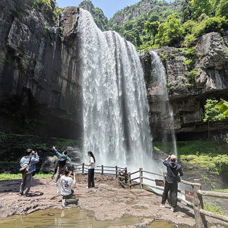 在探访百丈漈的旅程中,我们深深被其独特的自然风光所吸引。从一漈到二漈,虽然据说有一公里的路程,但沿途的美景让我们感觉转瞬即逝,很快就抵达了目的地。