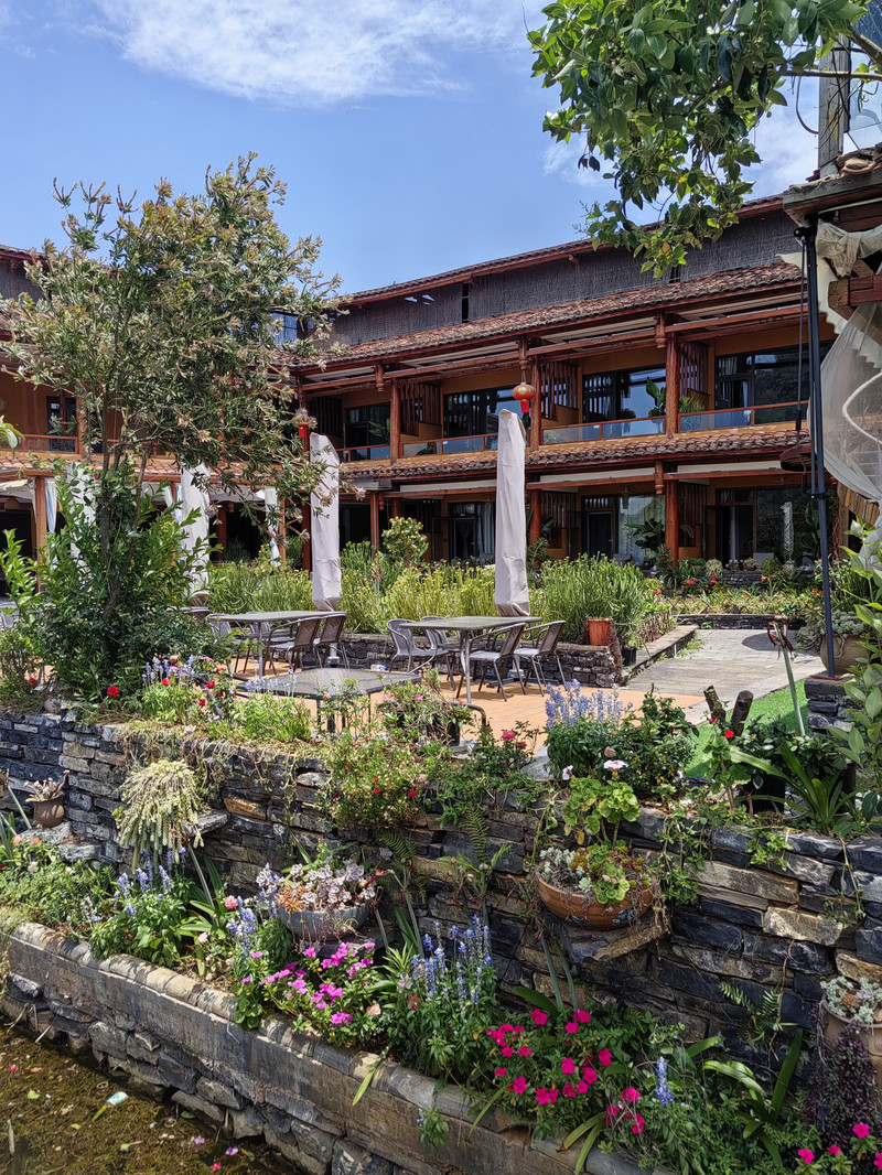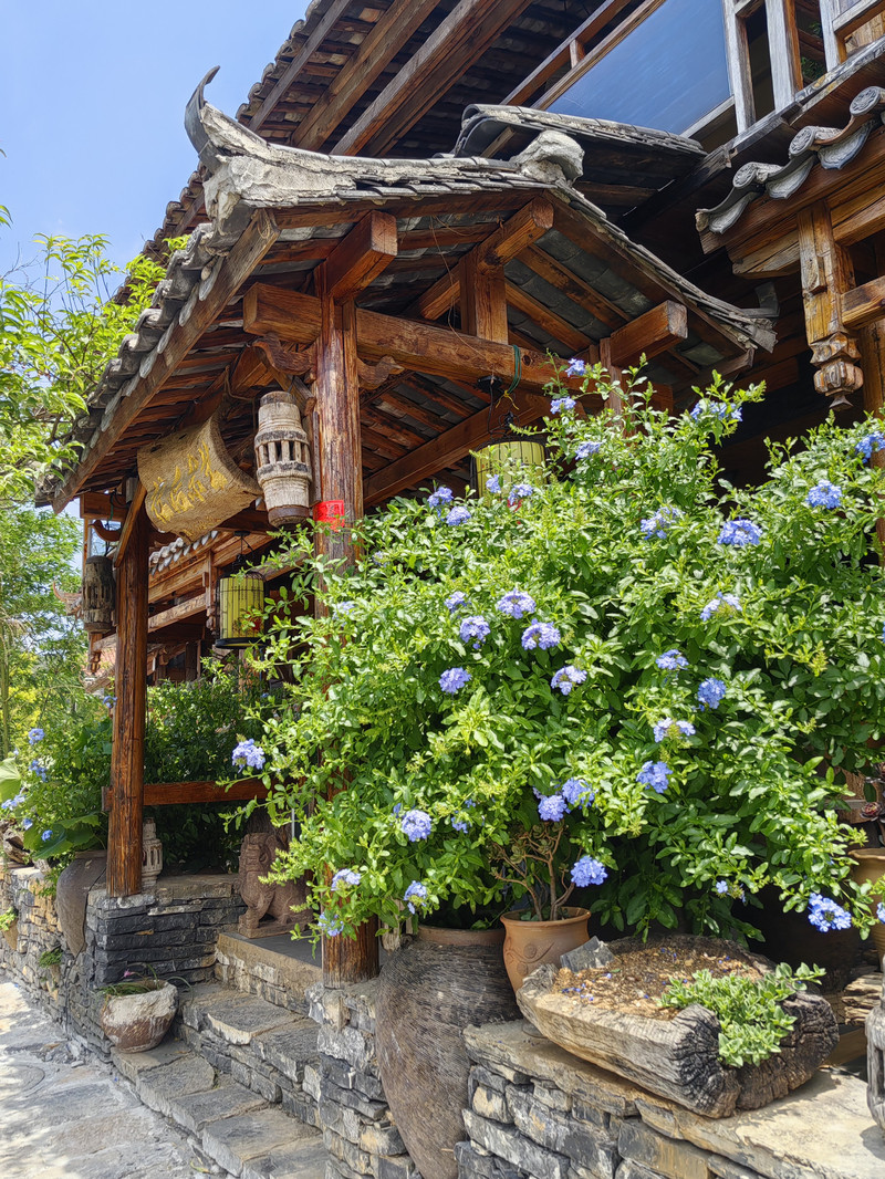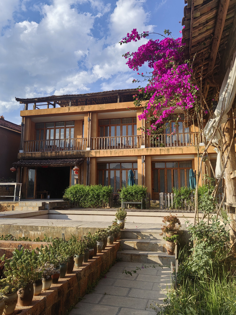 民宿,我们住2楼。红艳艳的三角梅是云南5月的主色