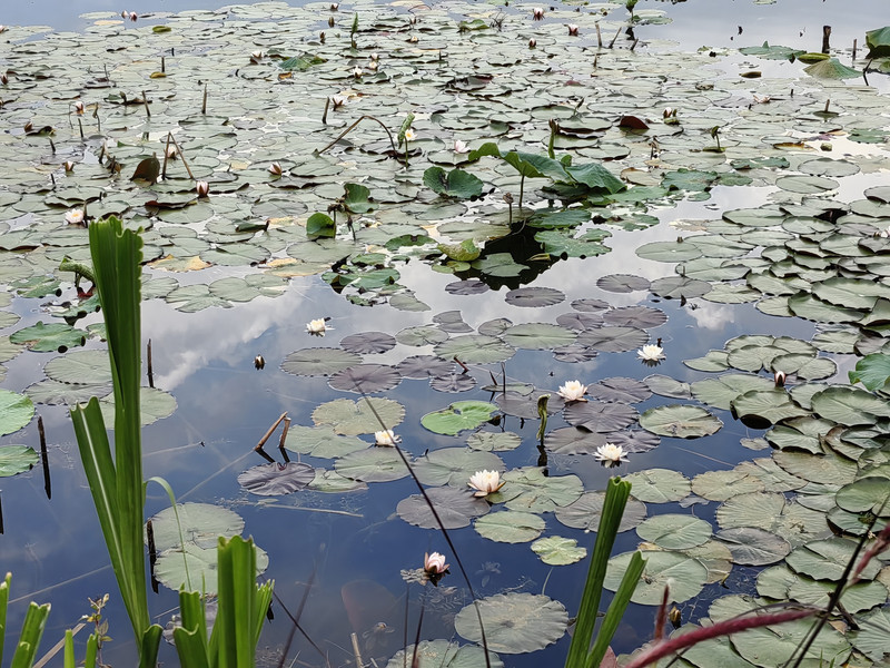 据说这里有很多珍稀品种的荷花,这是迫不及待提早绽放的睡莲,看,水那么清