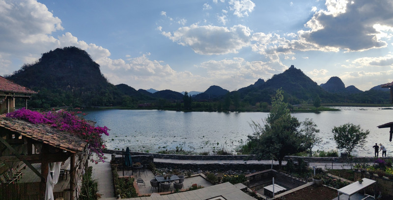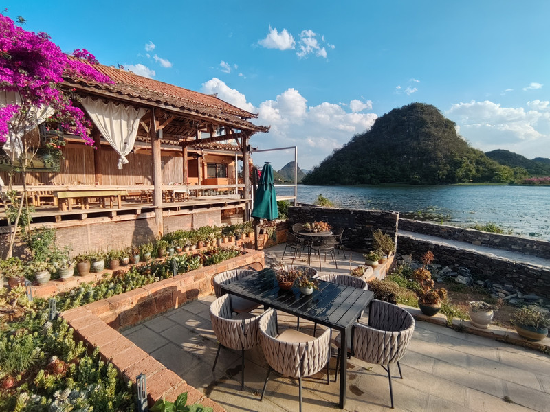 第二天,和萝卜兄在机场会合后,我们驱车直奔普者黑,虽然4个小时的路程比较累,但此行最满意舒适的就是在普者黑待的两天。住在仙人洞的千山外Halfsea Villa湖景度假民宿,位置太棒,与景区山水零距离,在阳台对着就是湖景,早上和傍晚凉凉的风吹着很是惬意,如果不是晚上有蚊子,都想在阳台睡觉了。因为淡季,整个民宿就我们俩,实际整个仙人洞村也没多少游客,准确地说是没有年轻游客,都是三五成群的退休大叔大妈游客。可以静静地享用,错峰旅行太美了。
